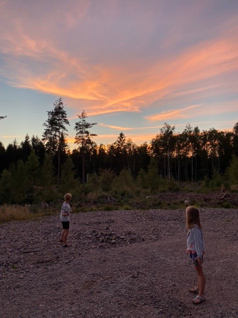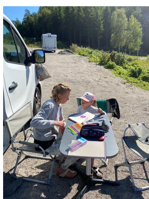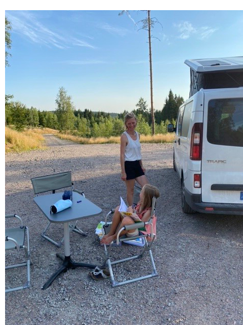 Le soir, nous trouvons un joli lac pour la baignade... mais nous ne sommes pas seuls à connaître le coin 🤣😂 Vendredi soir, pas très loin de Göteborg, on croise un peu de monde. En revanche, passé 21h, nous nous retrouvons seuls pour dormir sur le parking avec 3 français et une famille allemande. Le petit Noah de cette famille deviendra d'ailleurs très amis avec Ambre et Mathis.