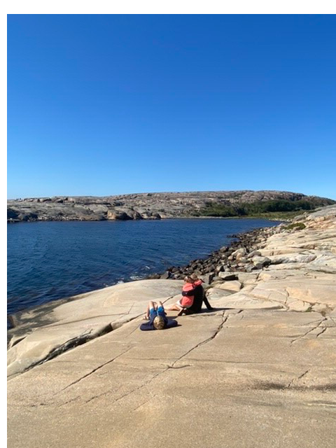 Sur la route nous faisons un stop au bord d'un joli lac où nous décidons de nous installer pour la nuit. Le soir venu nous rencontrons le propriétaire des lieux qui nous parlera pendant des heures de l'histoire des pays scandinaves bien alimenté par nos questions 😃 Il nous donnera aussi quelques tuyaux de petits coins à visiter autour du lac et notamment une jolie faille dans le granit que nous parcourons avec Mathis.