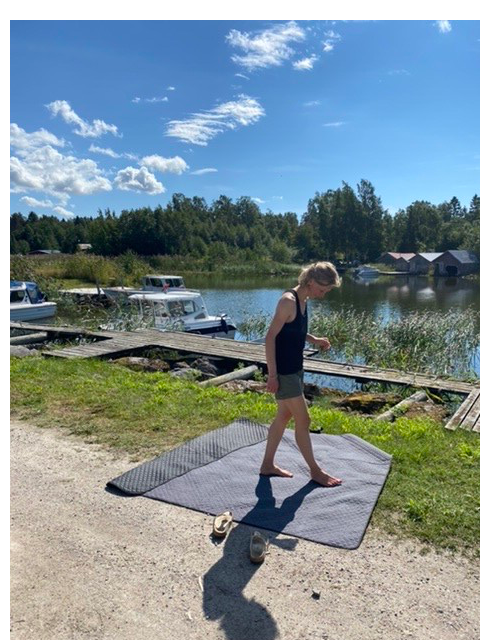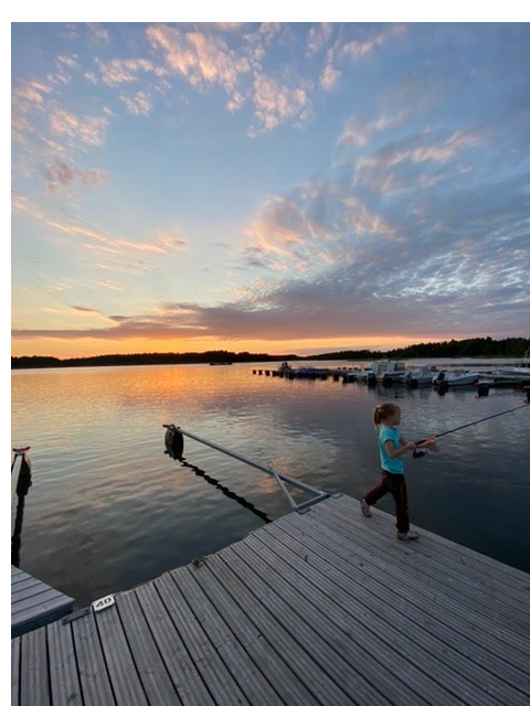 Malgré les demandes insistantes de Mathis pour changer d'endroit nous restons là pour la nuit. Le cadre est idyllique et perdu au bout d'un long chemin de terre. Il est malgré tout très fréquenté par les Finlandais qui l'utilisent pour partir dans leurs maisons secondaires avec leur bateau sur les multiples îles situées non loin.